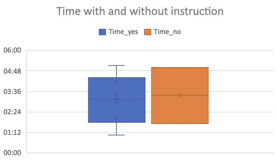 We asked some users to fulfill the task with clear and thorough instructions, and the rest with very simple instructions. Users that had more extensive instructions completed the task slightly faster than those without.