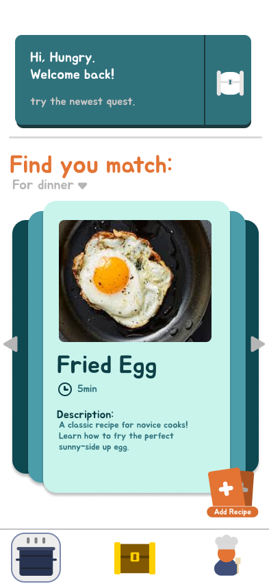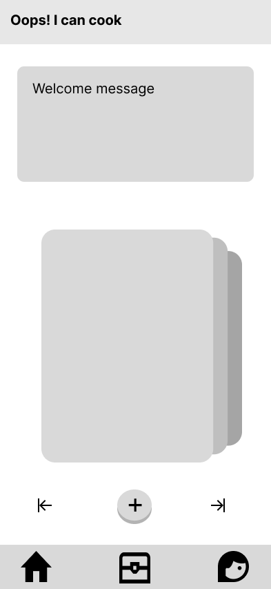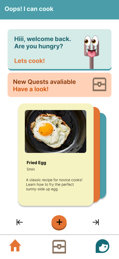 “Oops! I can cook” is a learning app for beginner chefs. Users can create and edit their own profiles, learn pre-made recipes in a monthly “Quest mode” and add their own recipes and search for them in the app. Complete with user testing!
